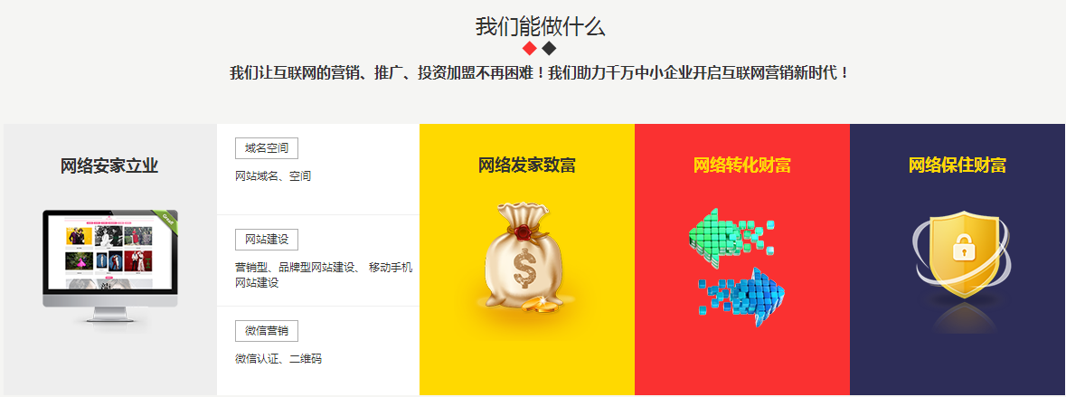3、低成本 這是企業(yè)追求的目標。建置企業(yè)網(wǎng)站的最低需求不需要花費大額的金錢投資,也幾乎沒有任何風險性。不但如此,透過企業(yè)網(wǎng)站姜可分擔部份的人工,節(jié)省市場開發(fā)與業(yè)務銷售及客戶服務的成本,縮短銷售體系的距離。