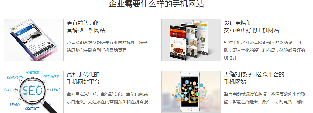 帝壹網(wǎng)絡(luò),是一家一站式借力互聯(lián)網(wǎng)營銷運營高科技企業(yè)。 長期致力于信息化領(lǐng)域的探索研發(fā)和全程服務(wù),帝壹網(wǎng)絡(luò)業(yè)務(wù)縱深涉及政府的網(wǎng)站建設(shè)和企事業(yè)單位的網(wǎng)站建設(shè)、網(wǎng)絡(luò)推廣、微信建設(shè)營銷、應(yīng)用軟件開發(fā)以及咨詢服務(wù)等眾多領(lǐng)域。提供互聯(lián)網(wǎng)全面網(wǎng)絡(luò)信息咨詢與解決方案。
