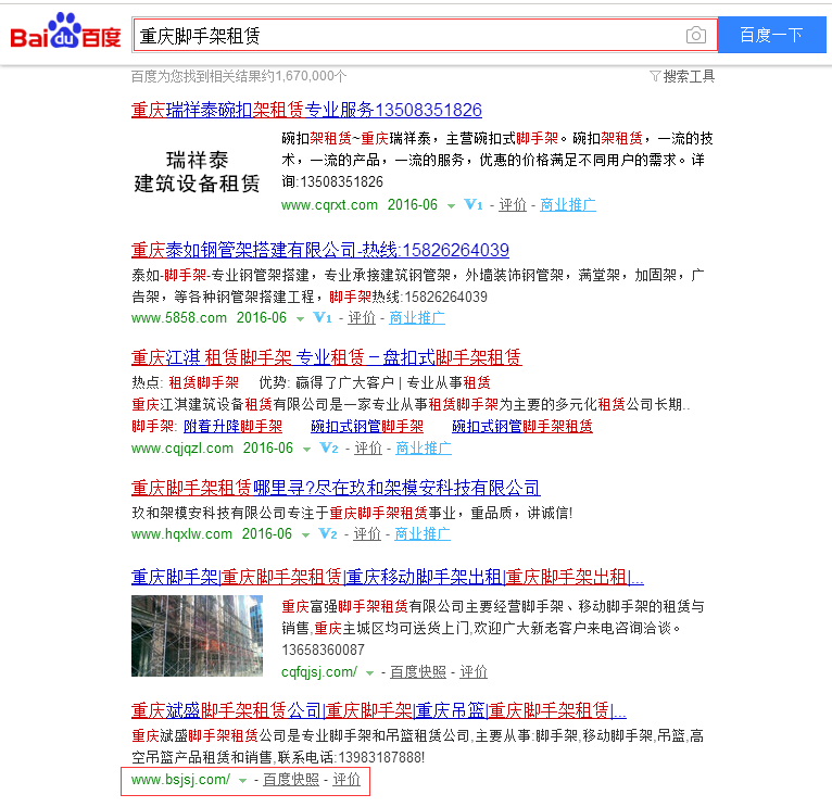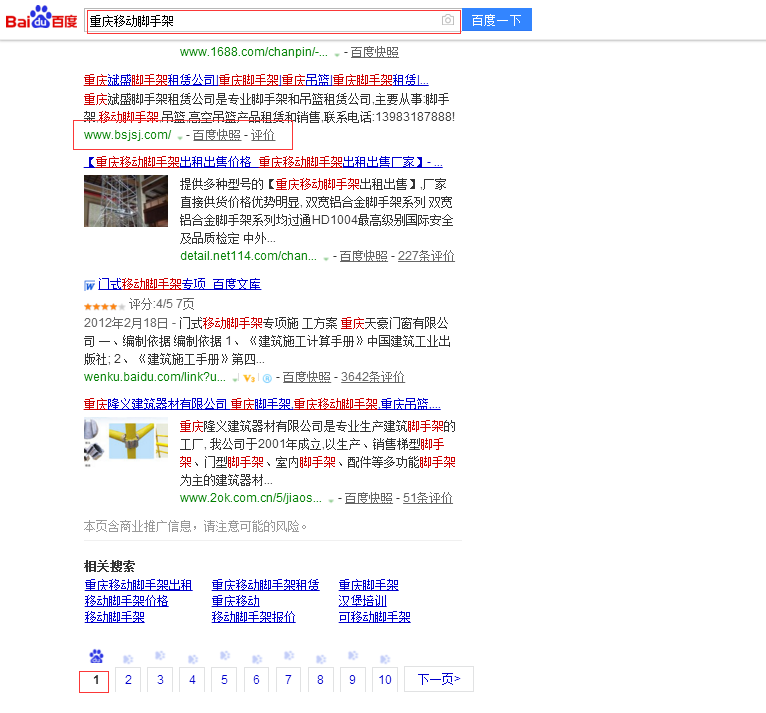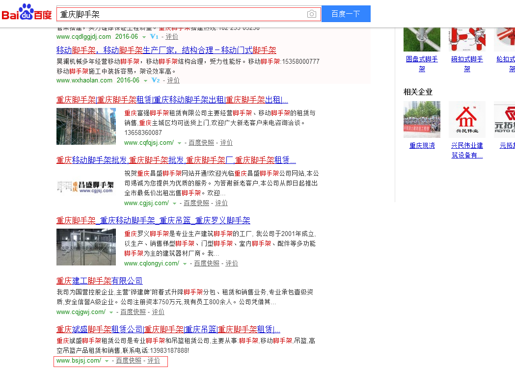 • 當前位置:網(wǎng)絡(luò)營銷 > 帝壹案例 > 網(wǎng)站seo排名案例>重慶斌盛腳手架租賃公司優(yōu)化排名