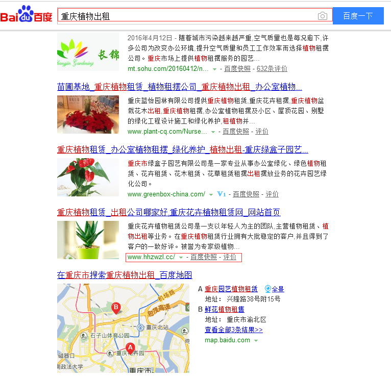 • 當(dāng)前位置:網(wǎng)絡(luò)營銷 > 帝壹案例 > 網(wǎng)站seo排名案例>重慶花卉植物租賃公司優(yōu)化排名