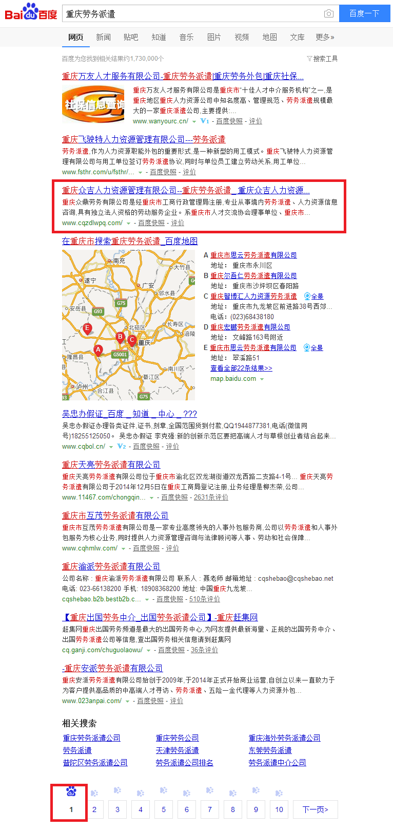 • 當(dāng)前位置:網(wǎng)絡(luò)營銷 > 帝壹案例 > 網(wǎng)站seo排名案例>重慶眾吉人力資源管理有限公司優(yōu)化排名
